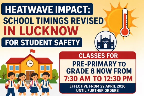 : बढ़ते तापमान और हीटवेव की स्थिति को देखते हुए जिलाधिकारी लखनऊ ने विद्यार्थियों के हित में बड़ा निर्णय लिया है। आदेश के तहत जनपद के प्री-प्राइमरी से कक्षा 8 तक के सभी सरकारी, परिषदीय, गैरसरकारी और निजी विद्यालयों के समय में बदलाव किया गया है।