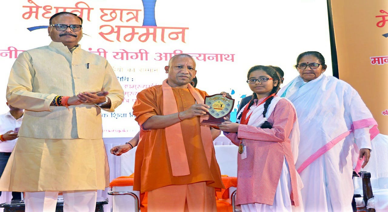 सीएम योगी ने मेधावी छात्रों को किया सम्मानित