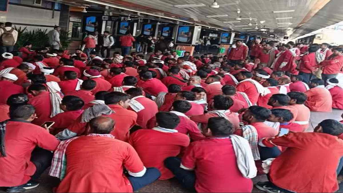 चारबाग रेलवे स्टेशन पर कुलियों का प्रदर्शन