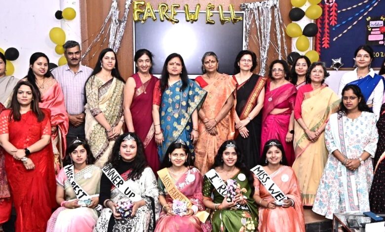 कार्यक्रम का मुख्य आकर्षण ‘मिस फेयरवेल 2026’ प्रतियोगिता रही, जिसमें छात्राओं ने रैंप वॉक, प्रतिभा प्रदर्शन और प्रश्नोत्तर राउंड में शानदार प्रदर्शन किया। अंत में सृष्टि मिश्रा को ‘मिस फेयरवेल 2026’ का खिताब मिला, जबकि प्रज्ञा पटवा प्रथम रनर-अप और शताक्षी त्रिवेदी द्वितीय रनर-अप रहीं।