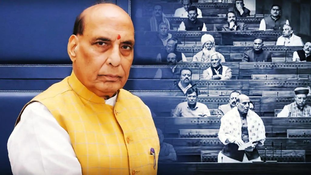 रक्षा मंत्री ने लोकसभा में ‘भारत के संविधान की 75 वर्षों की गौरवशाली यात्रा’ पर चर्चा की शुरुआत करते हुए लोकसभा में नेता प्रतिपक्ष राहुल गांधी पर भी परोक्ष निशाना साधा। उन्होंने कहा कि विपक्ष के कई नेता संविधान की प्रति अपनी जेब में रखकर घूमते हैं क्योंकि उन्होंने पीढ़ियों से अपने परिवार में संविधान को जेब में ही रखे देखा है। सिंह ने कहा, हमारा संविधान किसी एक पार्टी की देन नहीं, भारत का संविधान भारत के लोगों द्वारा, भारत के विचारों के साथ, भारत के मूल्यों के अनुरूप बनाया गया दस्तावेज है।
