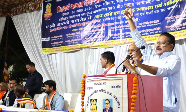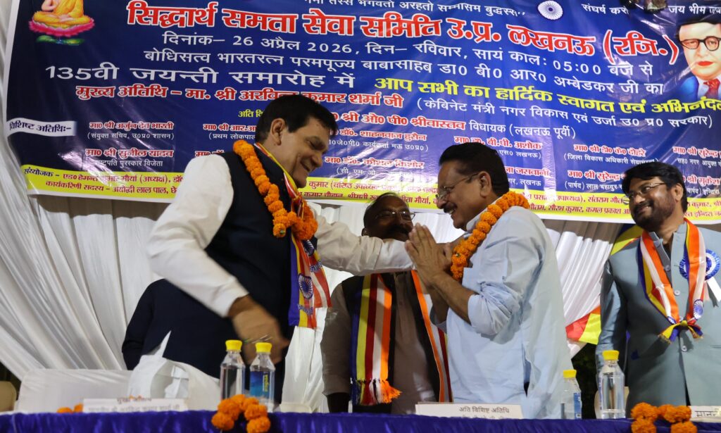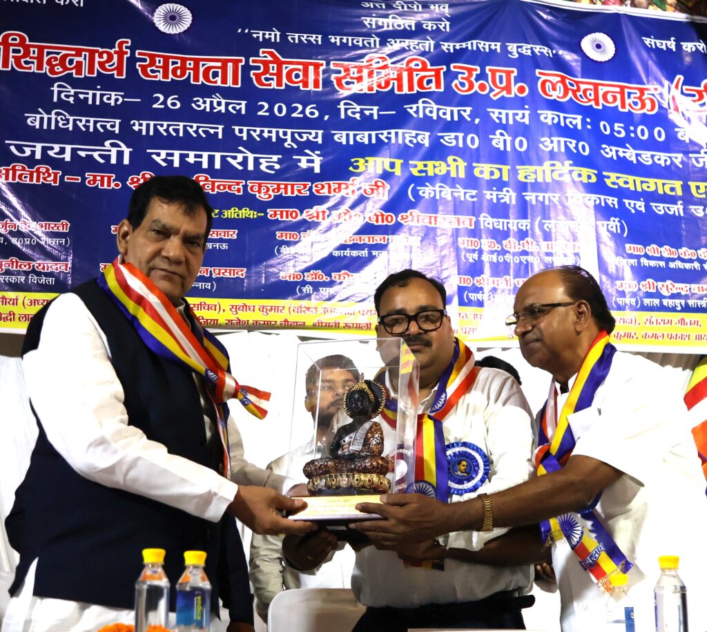 लखनऊ के इंदिरा नगर स्थित बौद्ध विहार, न्यू गौतम बुद्ध पार्क में बाबा साहब भीमराव रामजी अंबेडकर की 135वीं जयंती समारोह पूरे उत्साह और गरिमा के साथ मनाई गई। इस अवसर पर उत्तर प्रदेश के नगर विकास एवं ऊर्जा मंत्री अरविंद कुमार शर्मा मुख्य अतिथि के रूप में शामिल हुए और उन्होंने बाबा साहब के विचारों को आज के भारत के विकास से जोड़ते हुए बड़ा संदेश दिया।