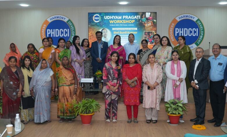 लखनऊ स्थित PHD हाउस में यूपी स्टेट चैप्टर PHD Chamber of Commerce and Industry (PHDCCI) द्वारा 18 मार्च 2026 को “उद्यम प्रगति वर्कशॉप 2026” का सफल आयोजन किया गया। इस कार्यशाला में बड़ी संख्या में MSME उद्यमियों ने भाग लिया, जिसमें महिला उद्यमियों की उल्लेखनीय और प्रभावी उपस्थिति रही। कार्यक्रम में NABARD और लघु उद्योग भारती के प्रतिनिधियों की सहभागिता ने इसे और भी महत्वपूर्ण बना दिया।