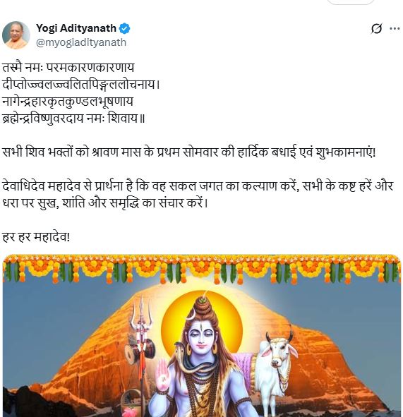 सावन के पहले सोमवार की CM योगी ने दी बधाई