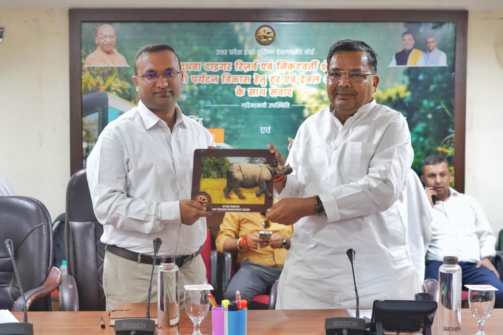 निश्चय टाइम्स, लखनऊ। पर्यटन विभाग द्वारा उत्तर प्रदेश ईको टूरिज्म डेवलपमेंट बोर्ड एवं टूर ट्रैवेल ऑपरेटर्स के साथ आयोजित की गई बैठक में प्रदेश के पर्यटन एवं संस्कृति मंत्री जयवीर सिंह ने कहा कि दुधवा के आस-पास के क्षेत्रों को भी पर्यटन की दृष्टि से विकसित किया जायेगा जिससे देशी-विदेशी पर्यटकों की संख्या में बड़ोतरी हो सके। आज पर्यटन भवन में आयोजित बैठक में पर्यटन मंत्री ने कहा कि पर्यटकों को ठहरने की सुविधा, योग, वैल्नेस सेन्टर ग्रामीण पर्यटन, स्थानिय हस्तशिल्प और व्यन्जन का आनंद लेने के लिए सुविधाएं बढ़ाई जायेंगी। दुधवा पर्यटकों के लिए एक बेहतरीन तथा रमणीक स्थल है। प्रदेश की आर्थव्यवस्था में इसका महत्वपूर्ण योगदान है। यहाँ पर वर्ष भर पर्यटक आते रहते है। पर्यटकों की सुविधा के लिए लखनऊ से दुधवा तक हवाई सेवा भी शुरू की गई है।