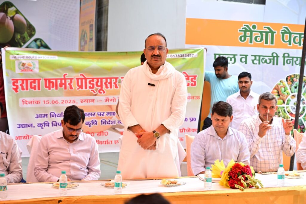 उद्यान मंत्री ने कहा कि इन्डो-जर्मन एएमडी प्रोजेक्ट के अंतर्गत लखनऊ क्षेत्र से चयनित 3 एफपीओ को कृषि निर्यात का प्रशिक्षण देकर उनकी क्षमता का विकास किया गया। इनमें से इरादा फार्मर्स प्रोड्यूसर कंपनी लिमिटेड एवं मलिहाबाद फार्मर प्रोड्यूसर कंपनी लिमिटेड को दुबई से दशहरी आम का सीधा ऑर्डर मिला है। यह दोनों एफपीओ इस वर्ष पहली बार स्वयं अपने स्तर पर दुबई को आम निर्यात कर रहे हैं। यह उत्तर प्रदेश के आम उत्पादकों के लिए एक ऐतिहासिक उपलब्धि है। उन्होंने कहा कि भेजे गए आम का मूल्य प्रति किलोग्राम लगभग 211 रुपये मिल रहा है, जो कि स्थानीय बाजार मूल्य से 5 गुना अधिक मिल रहा है।