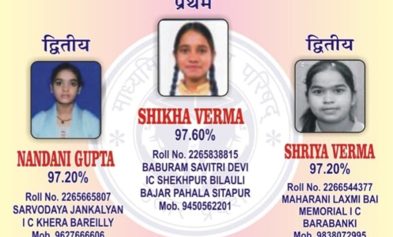 सीतापुर की बेटी ने पूरे प्रदेश में पहला स्थान हासिल कर अपने जिले का नाम रोशन किया। वहीं बाराबंकी की बेटियों ने शानदार प्रदर्शन करते हुए दूसरे और तीसरे स्थान पर कब्जा जमाया। इसके साथ ही बरेली की बेटियों ने भी मेरिट में दूसरे और तीसरे स्थान पर अपनी मजबूत उपस्थिति दर्ज कराते हुए यह साबित कर दिया कि छोटे शहरों की छात्राएं किसी से कम नहीं हैं।
