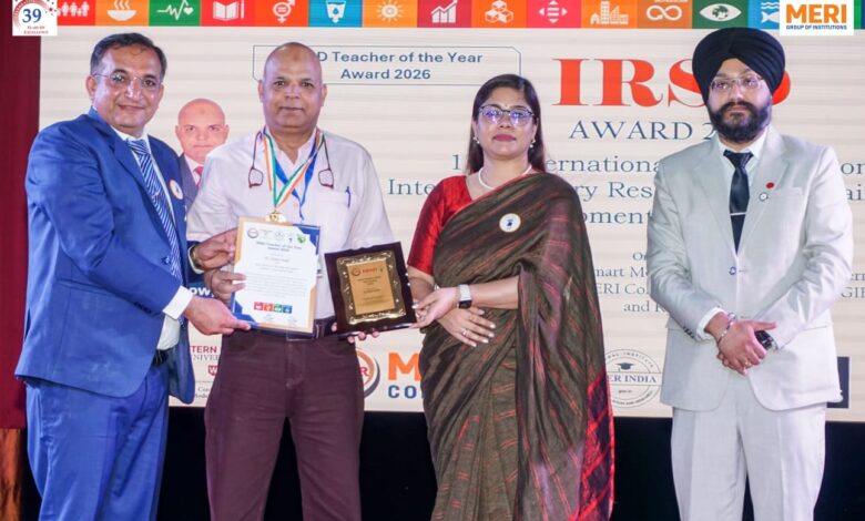 इस अवसर पर डॉ. अब्दुल मलिक को पैनलिस्ट के रूप में उत्कृष्ट योगदान के लिए प्रशस्ति पत्र प्रदान किया गया। साथ ही उन्हें “आईआरएसडी वर्ष 2026 के सर्वश्रेष्ठ शिक्षक” सम्मान से भी सम्मानित किया गया, जो उनके शैक्षणिक योगदान और उत्कृष्ट शिक्षण के प्रति समर्पण का प्रमाण है।