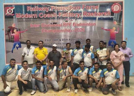 । Railway Protection Force (RPF) की अंतर-मंडलीय बैडमिंटन प्रतियोगिता का सफल आयोजन आधुनिक रेल डिब्बा कारखाना (आरेडिका) के गोमती इंडोर स्टेडियम में 03 से 05 अप्रैल 2026 तक संपन्न हुआ। कार्यक्रम में महानिरीक्षक सह प्रधान सुरक्षा आयुक्त रमेश चन्द और सुरक्षा आयुक्त संजय कुमार तिवारी की गरिमामयी उपस्थिति रही।