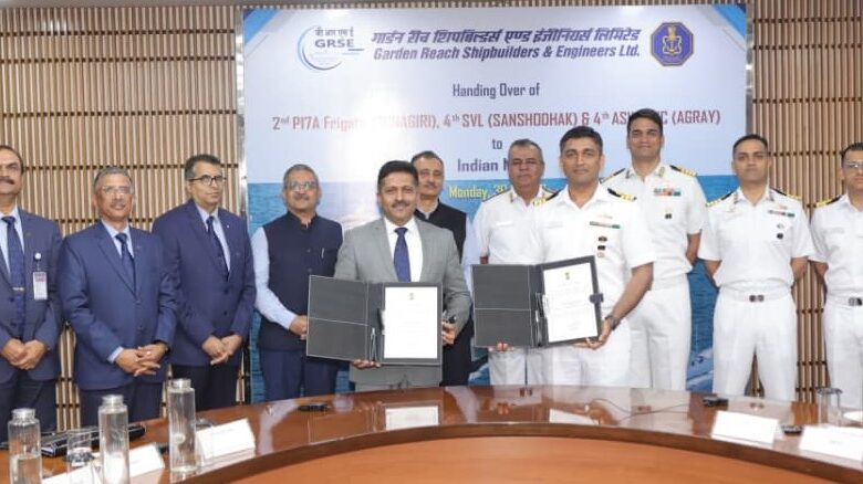 कोलकाता, 30 मार्च 2026: भारत की समुद्री सुरक्षा को और सशक्त करते हुए Garden Reach Shipbuilders & Engineers (GRSE) द्वारा निर्मित पनडुब्बी रोधी उथले पानी की युद्धक नौका ‘एग्रे’ को औपचारिक रूप से Indian Navy में शामिल कर लिया गया है। यह इस श्रृंखला का चौथा अत्याधुनिक युद्धपोत है, जो पूरी तरह स्वदेशी तकनीक से तैयार किया गया है।