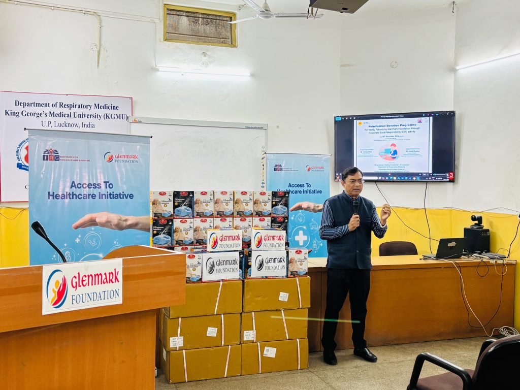 लखनऊ : जी.एम.यू. के रेस्पिरेटरी मेडिसिन विभाग में आज सांस के गरीब रोगियों के लिए ग्लेनमार्क फाउंडेशन मुंबई द्वारा 100 नेबुलाइजर का दान कार्यक्रम सम्पन्न हुआ। ज्ञात रहे कि भारत के प्रधानमंत्री ने एक योजना शुरू की है जिसका नाम कॉर्पोरेट सोशल रेस्पांसिबिलिटी है। इस योजना के अंतर्गत बड़े कॉर्पोरेट घरानों को सामाजिक सरोकार के लिए अपने लाभ से दो प्रतिशत का दान दिया जाता है। इसी योजना के तहत ग्लेनमार्क फाउंडेशन ने आज किंग जॉर्ज मेडिकल यूनिवर्सिटी के रेस्पिरेटरी मेडिसिन विभाग को 100 नेबुलाइजर सांस के गरीब रोगियों के लिए दान में दिये। नेबुलाइजर एक छोटी एवं उपयोगी मशीन होती है जो सांस के रोगियों के लिए इमरजेंसी के दौरान और सांस की समस्या में लंबे समय के लिए उनके उपचार में काम आती है। गरीब रोगियों के लिए इसे खरीदना थोड़ा महंगा होता है। इसी को ध्यान में रखते हुए रेस्पिरेटरी मेडिसिन विभाग के विभागाध्यक्ष डा0 सूर्यकान्त द्वारा पहल की गयी और ग्लेनमार्क फाउंडेशन से संपर्क किया तथा उनको प्रेरित किया कि केजीएमयू में आने वाले गरीब रोगियों के लिए कुछ नेबुलाइजर दान में दें।