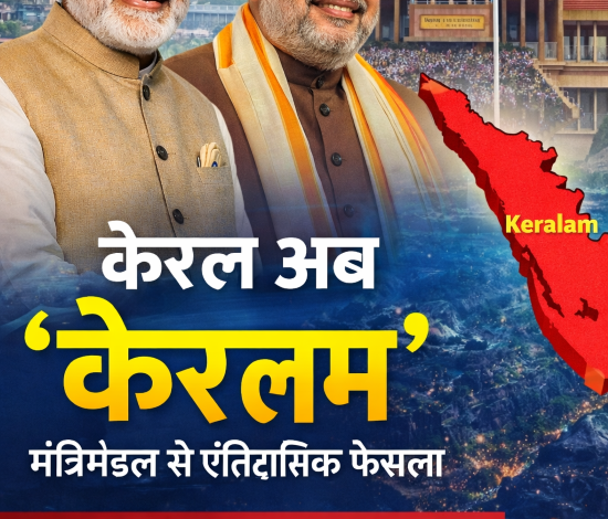 प्रधानमंत्री नरेन्द्र मोदी की अध्यक्षता में केंद्रीय मंत्रिमंडल ने ऐतिहासिक फैसला लेते हुए ‘केरल’ राज्य का नाम बदलकर ‘केरलम’ करने के प्रस्ताव को मंजूरी दे दी है। यह निर्णय संविधान के अनुच्छेद 3 के तहत लिया गया है, जिसके अनुसार संसद किसी भी राज्य का नाम बदल सकती है।