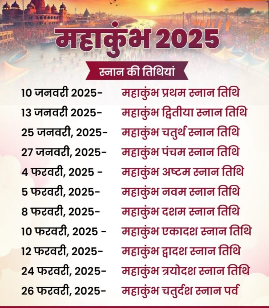महाकुंभ 2025: भक्ति, आस्था और शुद्धता का महापर्व, महाकुंभ स्नान की तिथियां