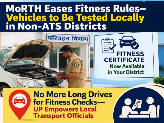 उत्तर प्रदेश में वाहन स्वामियों के लिए बड़ी राहत की खबर सामने आई है। प्रदेश के परिवहन राज्यमंत्री (स्वतंत्र प्रभार) दयाशंकर सिंह के अनुरोध पर सड़क परिवहन एवं राजमार्ग मंत्रालय (मोर्थ) ने नई गाइडलाइन जारी की है, जिससे अब उन जनपदों में भी वाहन फिटनेस प्रमाण पत्र जारी हो सकेगा जहां ऑटोमेटेड टेस्टिंग स्टेशन (एटीएस) अभी स्थापित नहीं हैं।