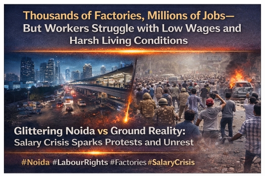 हाल ही में नोएडा के औद्योगिक क्षेत्रों में मजदूरों का गुस्सा सड़कों पर फूट पड़ा, जहां वेतन वृद्धि और बेहतर सुविधाओं की मांग को लेकर प्रदर्शन हिंसक हो गया।