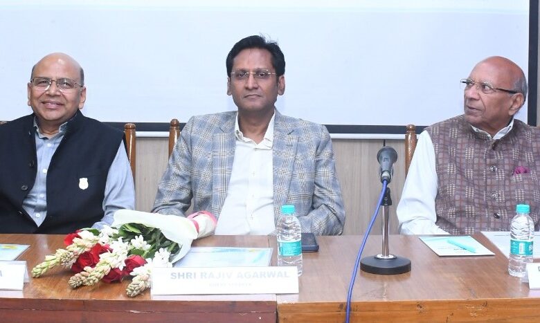 सत्र के मुख्य वक्ता श्री राजीव अग्रवाल रहे, जिन्होंने शेयर बाजार, निवेश रणनीतियों और वर्तमान आर्थिक परिदृश्य पर गहन विश्लेषण प्रस्तुत किया। उन्होंने वैश्विक मैक्रो आर्थिक रुझानों का विश्लेषण करते हुए बताया कि इन रुझानों को भारत की विकास यात्रा के साथ किस प्रकार जोड़ा जा सकता है।