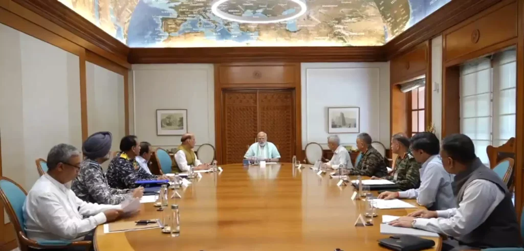 भारत और पाकिस्तान के बीच शनिवार शाम को सीजफायर की घोषणा के बाद प्रधानमंत्री नरेंद्र मोदी ने सुरक्षा मामलों पर एक महत्वपूर्ण बैठक की। इस बैठक में रक्षा मंत्री राजनाथ सिंह, एनएसए अजित डोभाल, सीडीएस अनिल चौहान और तीनों सेनाओं के प्रमुख मौजूद रहे। बैठक में प्रधानमंत्री को सीजफायर के बाद की स्थिति और पाकिस्तान के रुख पर जानकारी दी गई।