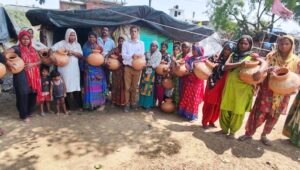 लखनऊ 11 अप्रैल। हनुमान जयंती के अवसर पर एक दिन पूर्व शुक्रवार 11 अप्रैल को हनुमत सेवा समिति के अध्यक्ष विवेक पाण्डेय द्वारा जरूरतमंदों में मिट्टी के मटकों का वितरण मड़ियांव क्षेत्र किया गया। इसके माध्यम से उन्होंने संदेश दिया कि मटके के शीतल जल से जहां लोगों का स्वास्थ्य ठीक रहेगा वहीं गर्मियों में मटका दान का अनुसरण करने वाले दाता, के घर में भी सुख-समृद्धि आएगी और लक्ष्मी जी की कृपा हमेशा बनी रहेगी। सेवा भाव को महत्व देते हुए विवेक, न केवल कुष्ठ रोगियों की सेवा अमावस्या पर भोजन और दवा दान करके कर रहे हैँ बल्कि नि:शुल्क हनुमत पाठशाला का संचालन करके जरूरतमंदों बच्चों का भविष्य भी संवार रहे हैं।