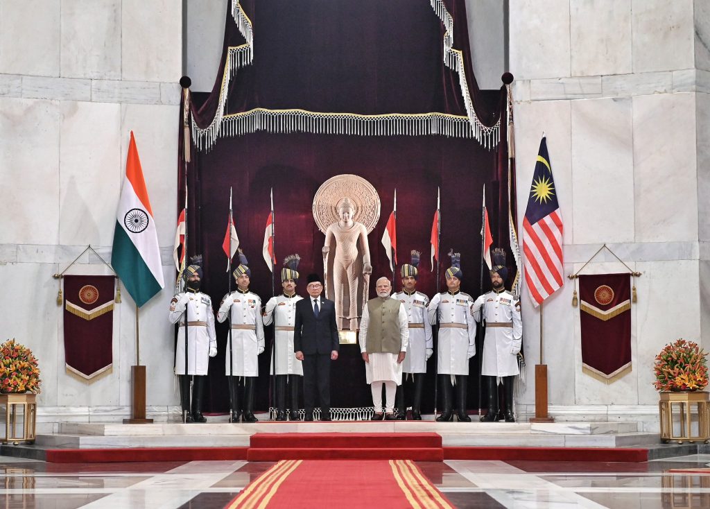 प्रधानमंत्री नरेंद्र मोदी ने राष्ट्रपति भवन में अनवर इब्राहिम का औपचारिक स्वागत किया। इस दौरान दोनों नेताओं ने गर्मजोशी से गले मिलकर अपने देशों के बीच गहरे संबंधों का प्रतीक दिखाया। इसके बाद, मलयेशिया के प्रधानमंत्री ने नई दिल्ली स्थित महात्मा गांधी के समाधि स्थल राजघाट जाकर उन्हें श्रद्धांजलि अर्पित की।