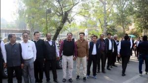 लाठीचार्ज के विरोध में मानव श्रृंखला बनाकर वकीलों ने कचहरी में निकाली पदयात्रा