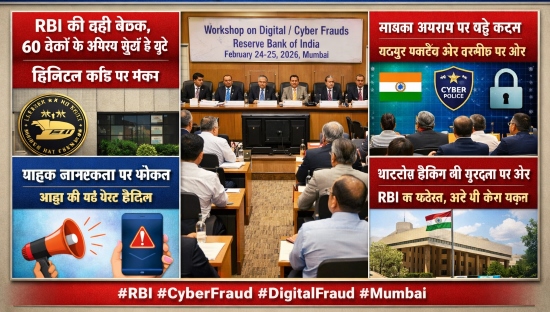 मुंबई स्थित Reserve Bank of India के केंद्रीय कार्यालय में 24–25 फरवरी 2026 को डिजिटल और साइबर फ्रॉड पर दो दिवसीय वर्कशॉप आयोजित की गई। इस अहम बैठक में देश के 60 प्रमुख बैंकों के एग्जीक्यूटिव डायरेक्टर्स और फ्रॉड रिस्क मैनेजमेंट प्रमुखों ने भाग लिया।