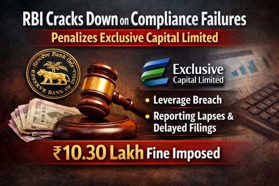 वित्तीय अनुशासन की अनदेखी एक बार फिर महंगी साबित हुई है। भारतीय रिज़र्व बैंक (RBI) ने गैर-अनुपालन के गंभीर मामलों में Exclusive Capital Limited पर ₹10.30 लाख का मौद्रिक जुर्माना लगाया है। यह कार्रवाई 27 मार्च 2026 के आदेश के तहत की गई, जिसने कंपनी की कार्यप्रणाली पर कई सवाल खड़े कर दिए हैं।
