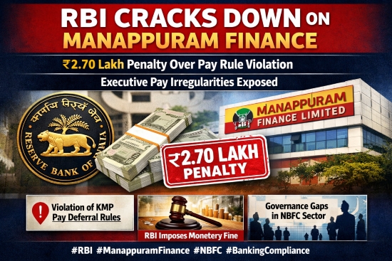 देश की प्रमुख गैर-बैंकिंग वित्तीय कंपनी Manappuram Finance Limited एक बार फिर नियामकीय नियमों की अनदेखी को लेकर सवालों के घेरे में आ गई है। Reserve Bank of India (RBI) ने कंपनी पर ₹2.70 लाख का मौद्रिक जुर्माना लगाया है। यह कार्रवाई आरबीआई के उन निर्देशों के उल्लंघन के कारण की गई है जो Key Managerial Personnel (KMP) के वेतन और विशेष रूप से वेरिएबल पे के स्थगन (Deferral) से जुड़े हैं।