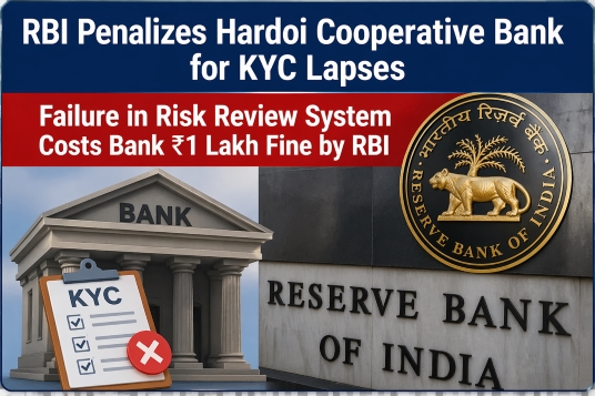 Reserve Bank of India (RBI) ने उत्तर प्रदेश के Hardoi Jilla Sahkari Bank Ltd. पर KYC (Know Your Customer) नियमों के उल्लंघन के चलते ₹1 लाख का मौद्रिक जुर्माना लगाया है। यह कार्रवाई बैंकिंग प्रणाली में पारदर्शिता और सुरक्षा सुनिश्चित करने के लिए नियामकीय सख्ती का एक स्पष्ट संकेत मानी जा रही है।