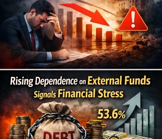 सबसे चिंताजनक पहलू है बाहरी फंडिंग पर बढ़ती निर्भरता। Ministry of Corporate Affairs से प्राप्त आंकड़ों के अनुसार, कंपनियों के कुल फंड में बाहरी स्रोतों की हिस्सेदारी बढ़कर 53.6% हो गई है। यह इशारा करता है कि कंपनियां अपने संचालन के लिए कर्ज और देनदारियों पर ज्यादा निर्भर हो रही हैं।