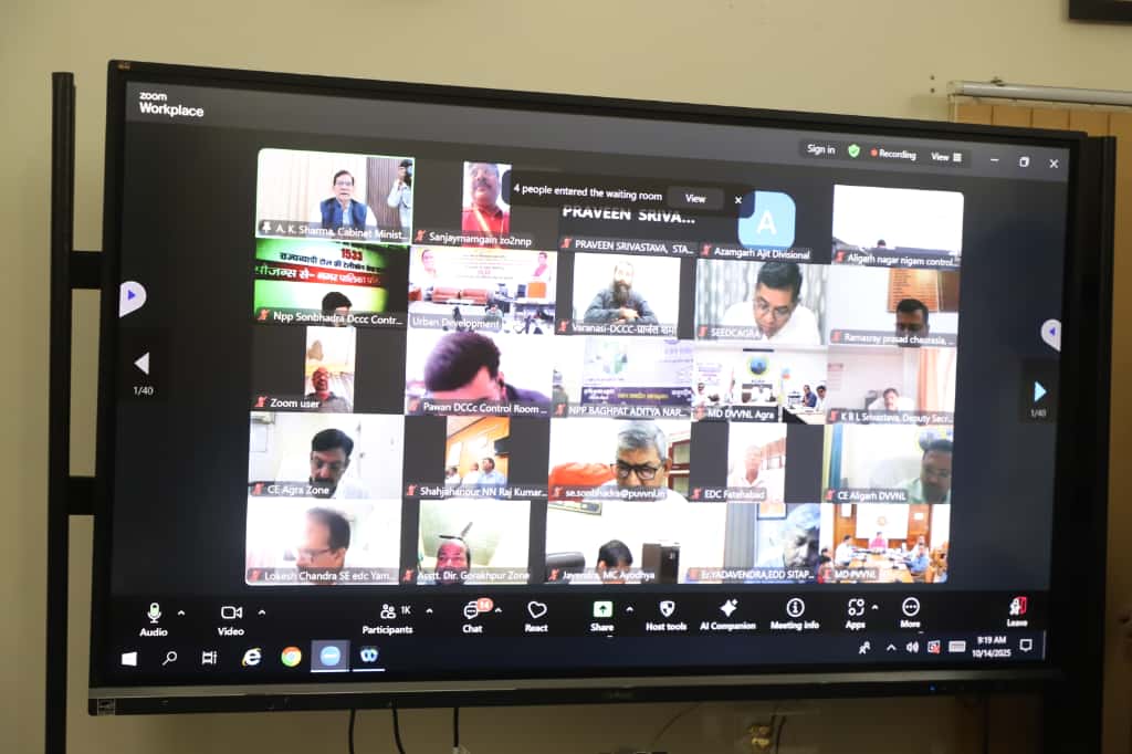 बैठक के दौरान प्रमुख सचिव नगर विकास श्री पी गुरु प्रसाद, सचिव अजय शुक्ला, निदेशक श्री अनुज झा,अपर निदेशक रितु सुहास,सहायक निदेशक श्री असलम अंसारी, विद्युत विभाग के एम डी पंकज कुमार, डायरेक्टर इलेक्ट्रिकल सेफ्टी एवं सभी डिस्कॉम के अधिकारी प्रमुख रूप से जुड़े रहे।